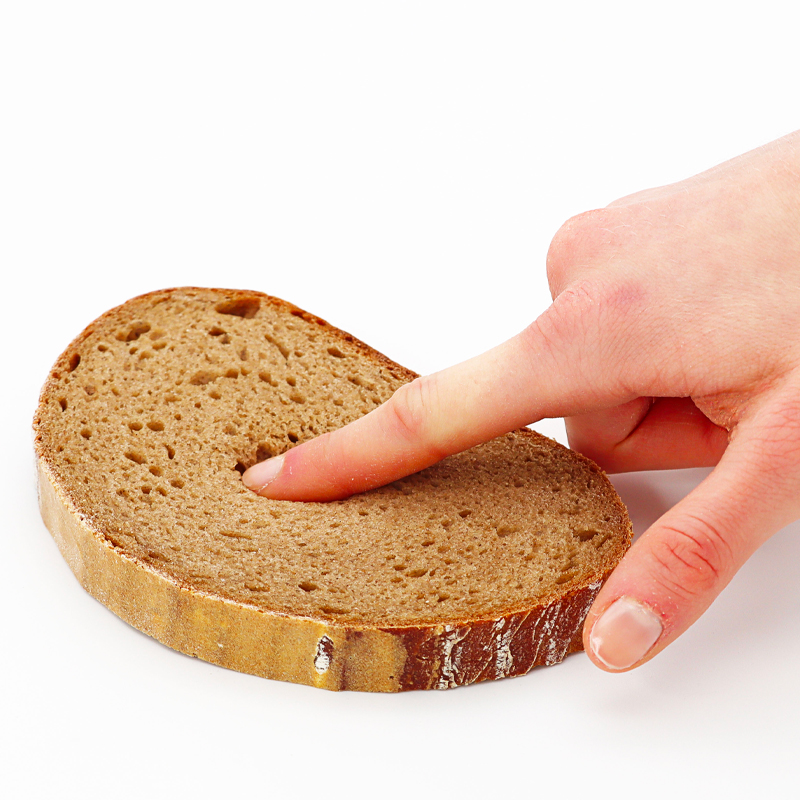 Appuyer fortement avec un doigt au centre de la tranche puis évaluer l’aptitude de la mie à reprendre sa forme initiale.