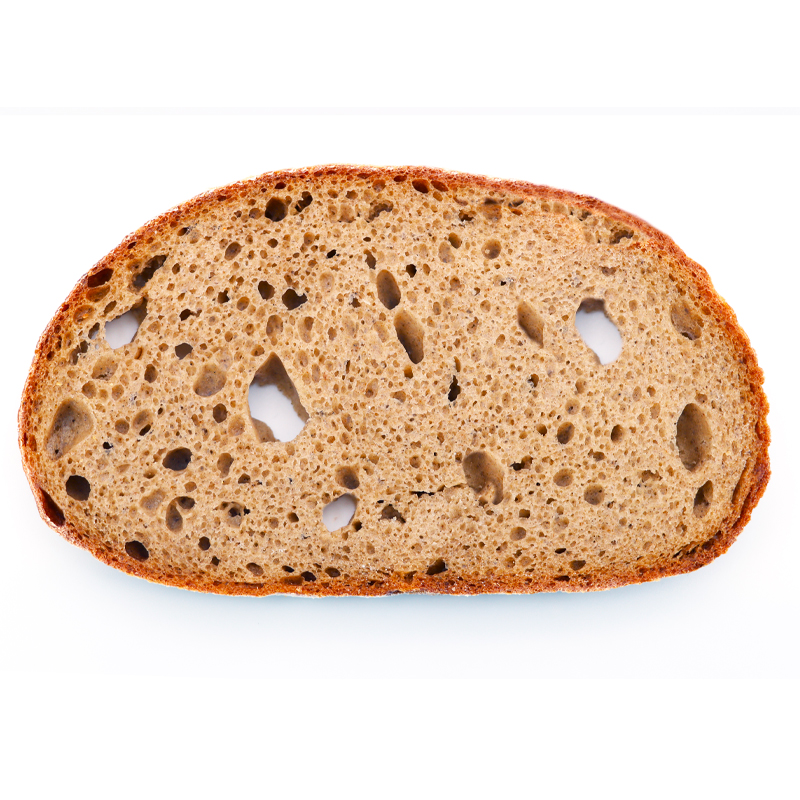 Position a 2 cm thick slice in front of a light source. Greater light transmission indicates deeper and more open crumb cells.
