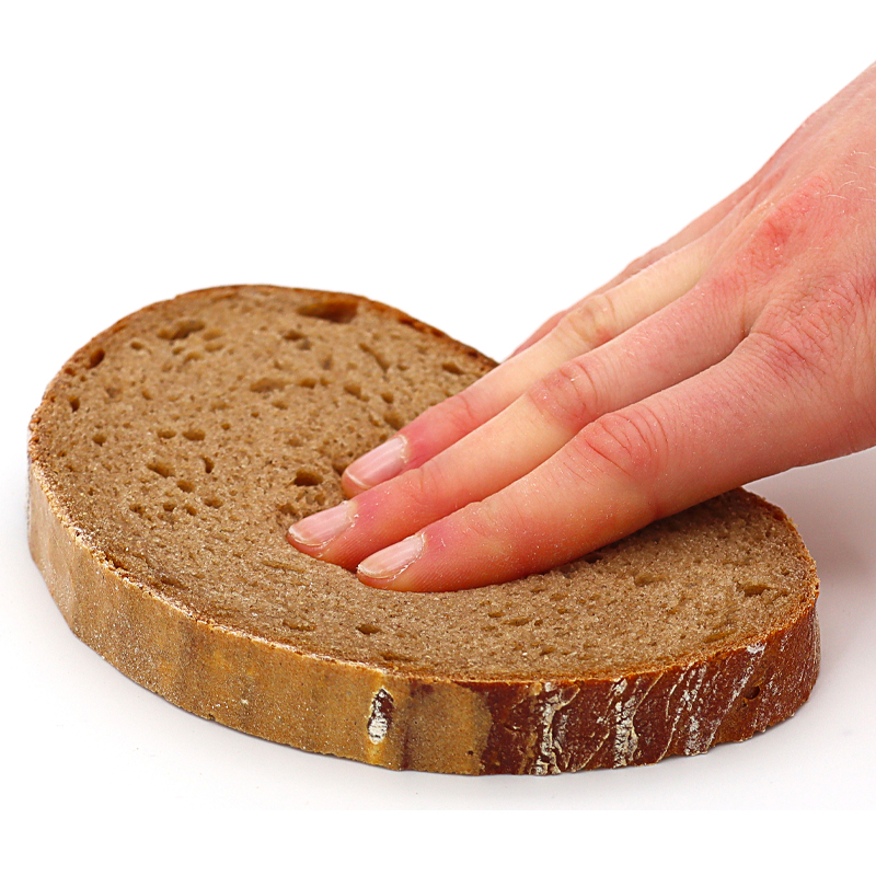 Presione suavemente la miga con los dedos y evalúe la firmeza a la que resiste la compresión.